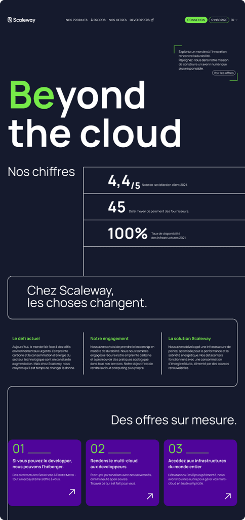 Scaleway, the tech subsidiary of Free, was looking for their website redesign. The goal was to make the website more understandable and attractive.